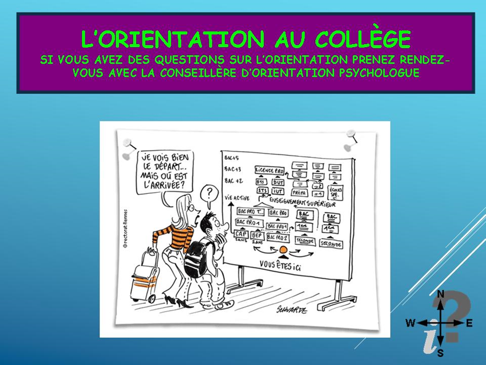 Présente au collège le mardi semaine impair de 9h à 17h Vous pouvez prendre rendez-vous à la vie scolaire Vous pouvez aussi prendre rendez-vous au C.I.O au 05.67.52.41.41 |